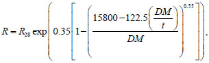 where R28 = B + 12 is the compressive strength at the design age of 28 days (MPa), t is the time in hours, DM is the degree of maturity of concrete, determined by the integral (Eq. 4):