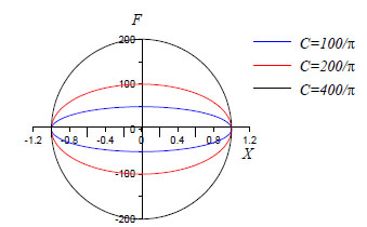 is the velocity of the piston, C is a constant depending mainly by the annular orifice area, the diameter of the piston and the fluid properties as well as the temperature. It is possible to obtain a more stable device using different material for the piston and the cylinder, making it possible the different thermal dilatation of the two parts. Changing shape and dimension of the annular orifice provides the thermal effect counterbalance [17]; in Fig. (2) it’s possible to see the force-displacement curve for different value of C for a sinusoidal displacement history.