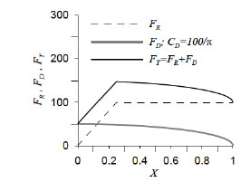 Increasing of internal forces of an elasto-plastic single degree of freedom system with FVD.
