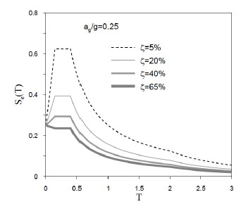 in which ξ (which has the same significance of βeff) is the structural damping or the equivalent viscous damping. Also in this case, if the response spectrum analysis is selected there will be an η coefficient for each structural mode used in the procedure. If a time history analysis is performed the dampers must be included in the structural model.