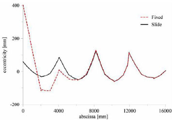 Eccentricity in one of the main arches for fixed support and slide support at the base.