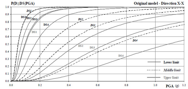 • In the analyses reported in section 3, it was observed that at relatively high excitation levels (above around 0.7 g), some dynamic analyses could not converge for the entire duration of the record. However, in those cases, the lower bound global damage index had already reached the collapse point (DS4) and hence derivation of the corresponding fragility curves was still feasible.