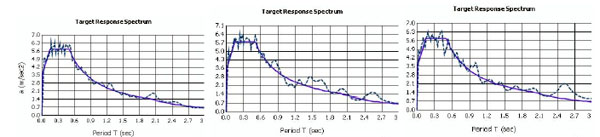Elastic response spectra of artificial accelerograms, compliant to EN1998 soil type B.