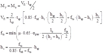 For spandrel hinges, the analytical procedure suggested in [20] and experimentally validated in [21] was followed. The following relationships were used to estimate the spandrel strength: