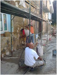 • Careful cleaning of masonry using low abrasive tools and water. It is recommended that a brush and sand paper be used, while high pressure sand blasting and extreme mechanical cleaning should be avoided in order to prevent damage to the stone