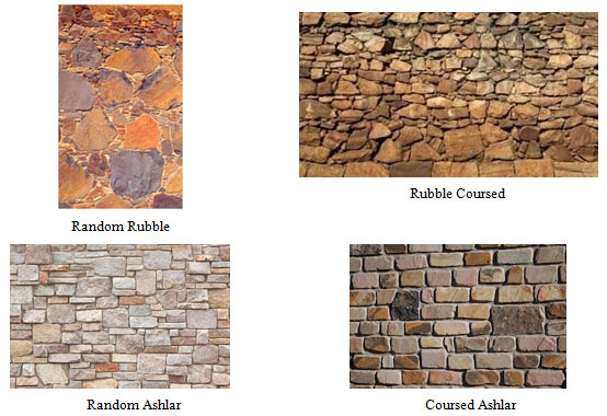 • Rubble: stones are roughly cut, or used as found, leading to relatively large mortar joints
