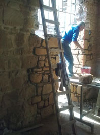 • The crack must be filled in with stones and gallets and re-pointed with lime mortar in order to complete the wall.