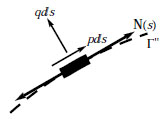 For equilibrium, calling p q the components of q in the tangential and normal directions, and denoting