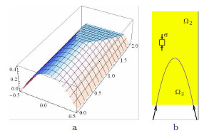 In (a) Airy’s folded stress function for the mixed problem represented in Fig. (9b). In (b) a scheme of the corresponding stress is reported.