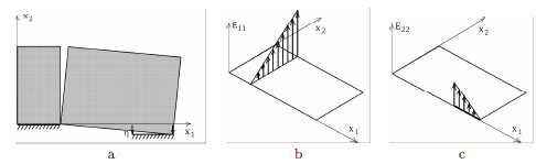Strain. In what follows, special displacement fields of bounded variation will be considered. In particular, restricting to discontinuous displacement fields u having finite discontinuities on a finite number of regular arcs Γ, the strain E(u) consists of a regular part Er , that is a diffuse deformation over Ω-Γ, and a singular part Es in the form of a line Dirac delta, concentrated on Γ.