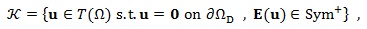 ∂.ΩD and to assume that u must comply with the constraint u = u, on the skin ΩD, and admitting possible singularities of the strain at the constrained boundary. Then, from here on, we shall deviate from standard notation referring to Ω as to the set Ω