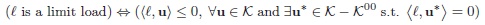 is a singleton and we can say that the structure, with this load, is statically determined (see Remark 4). Note that based on the definition (3) mentioned above and on the theorems of LA, the load is not safe. It is actually limit (see Limit Theorem above) since by splitting the panel into two parts along any vertical line Γ with a normal crack, the strain corresponding to this mechanism is a horizontal uniaxial Dirac delta whose intensity has the value of the displacement jump along Γ: the work of the load for this non-zero mechanism is zero. Note that the strain corresponding to this mechanism and the unique statically admissible stress field are reconcilable in the sense of condition (19), that is they represent a possible solution for the BVP. The fact that, under these conditions, strain can increase indefinitely at constant load, is a typical feature of limit loads.