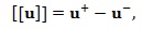 , along a straight interface Γ, of tangent t and normal m. On such a line, the jump of u is defined as: