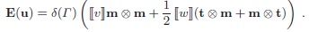 The strain E corresponding to the piecewise constant field u with a strong discontinuity on the line Γ, is zero everywhere on Ω-Γ and is singular across Γ: