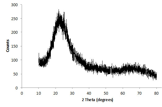 XRD trace of RHA obtained from calcination of RH for 2 hours at 750°C or 1322°F).
