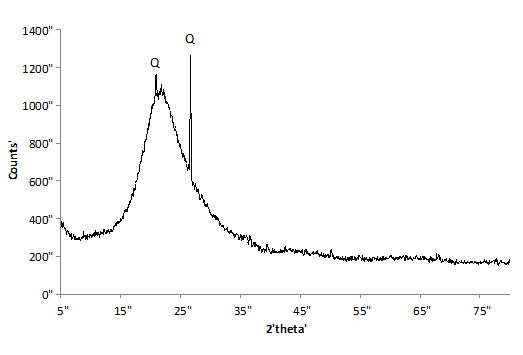 XRD trace of dehydroxylated kaolin after 2 hours at 750°C (1322°F).