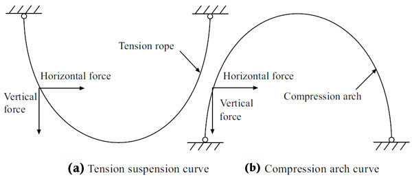 - Because of the effect of earth pressure, according to catenary theory, the catenary curve arch mainly suffers from pressure, with only small bending moment and shear force; therefore, it can give full play to the compressive properties of concrete.