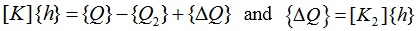 Where, [K] and [K2] are total seepage matrices determined by global and virtual fields using boundary conditions, respectively; {h} is the head array of the unknown node; {Q} and {Q2} are flow arrays contributed by the known head node, inner source term and flow boundaries of the global and virtual fields, respectively.
