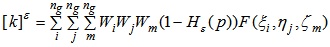 Where ng is the number of encrypted Gaussian points in each coordinate direction, which can be increased to 7, and substantially refines the grid cell around the free surface to improve precision; Wi, Wj, Wm are the weighted values of each coordinate direction; F(ξi, ζj, ηm) is the integrand with (ξi, ζj, ηm), the coordinates of the Gaussian point; Hε(p) is the continuous penalty function used to solve the problem that the contribution of the transition elements cannot be considered sufficiently while solving [k]2 by the encrypted Gaussian method.