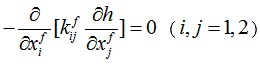 According to the continuity equation of water flow and Darcy’s law, the three dimensional, stable saturated seepage control equation for heterogeneous anisotropic porous media can be written as: