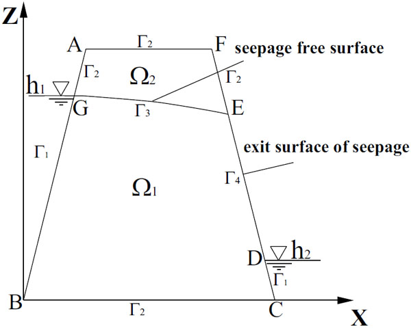 Seepage analysis of the finite element method (FEM) can be divided into variable grid and fixed grid method. Fixed grid method has been widely applied at present. Such as Mohammad and Farhang [6] put forward a smoothed fixed grid finite element method (SFGFEM), which was used to simplify the solution of variable domain problem of unconfined seepage. And based on the fixed grid method, Zhang and Wu [7], Shu et al. [8], and Cui and Zhu [9], established an improved cut-off negative pressure method, element conduct matrix regulative method, and improved nodal virtual flux method, respectively. The methods were successfully applied to seepage with free surface.