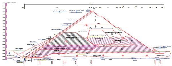 In normal operation, local defects on the dam face will increase the seepage rate and slope of the second seepage control line, in defective parts. Due to the complementary anti-seepage effects of the cushioning and transition layers, and the rock-fill, however, the seepage control system is not usually affected and the dam can still retain water.