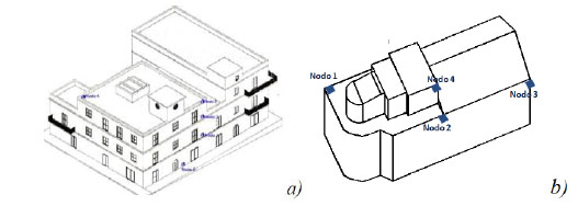 A system of triaxial accelerometers was positioned in both the buildings. The location of the acquisition nodes is reported in Fig. (11).