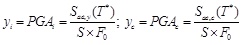 The definition of peak ground accelerations (PGA) corresponding to the beginning of the damage (PGAi=yi) and collapse (PGAc=yc). The first condition was associated to the yielding displacement, the second to the collapse displacement both determined on the bilinear curves. The previous expression by Miranda and Bertero, in the case of T* < Tc, can be rewritten as