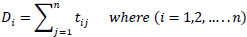 The sum of rows (D) and columns (R) of the total identity matrix (T) were obtained as: