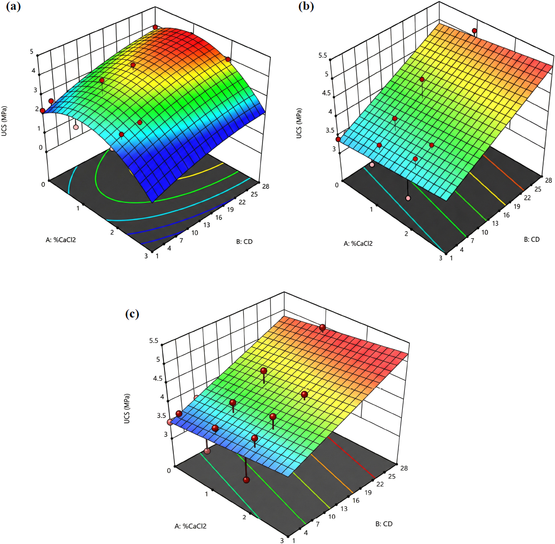 From a practical perspective, the developed RSM models provide a valuable tool for field engineers to predict strength development under different curing periods and stabilizer dosages. They also highlight the risks of overdosing CaCl2, which may deliver short-term strength benefits but could compromise long-term durability in CIPR applications.